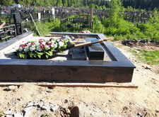 Снова возвращаемся к могиле. Устанавливаем подставку, на которой будет размещён памятник, цементируем.